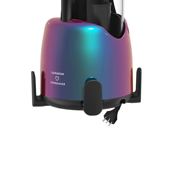The Laurastar Lift Edition Germanier is a state-of-the-art steam iron designed in collaboration with Swiss fashion designer Kévin Germanier, blending unique technology with stunning design. This limited-edition product is meticulously handcrafted from recycled parts and individually numbered, reflecting the shared values of Laurastar and Germanier: excellence, creativity, and sustainability. It also comes with a dazzling Germanier heart-shaped keychain made from recycled Swarovski crystals, symbolizing the union of these two Swiss brands.
